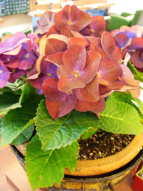 このように色の変化するあじさいは日本独特のものでヨーロッパ等ではアルカリ性土壌のためほとんどがピンク系だそうです。