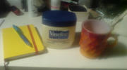 寝る前にファイヤーキングのコップに温かい紅茶やハーブティーを入れ 飲みながら 特大ワセリンを手にたっぷりとつけ 今日1日の日記を書く~ 時!